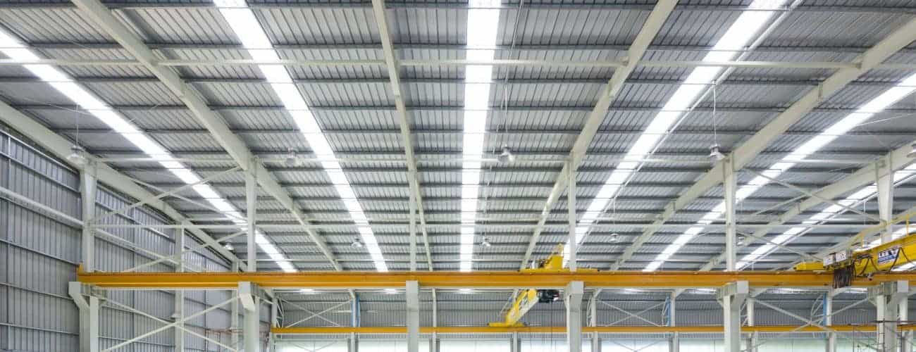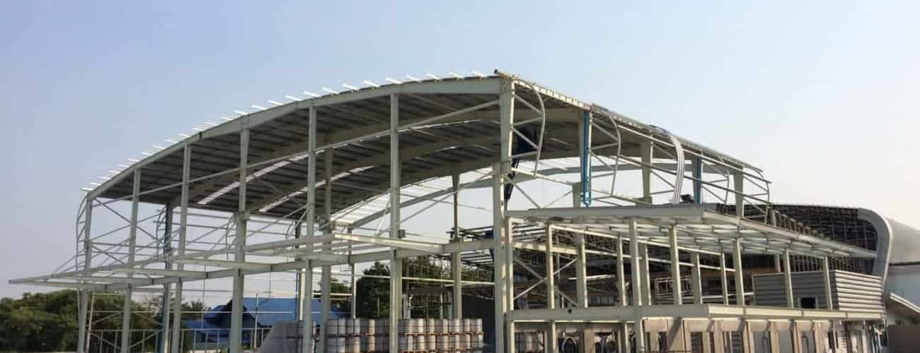 โรงงานเหล็กสำเร็จรูปทรงโค้งพร้อมรางเครน เพื่อผลิตหลังคาเหล็กและแปกัลวาไนซ์
