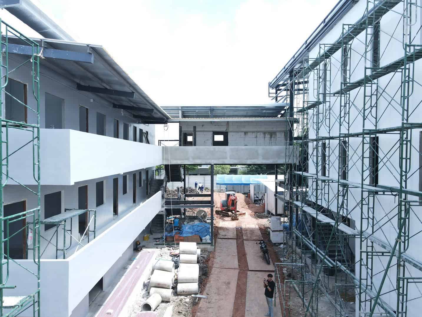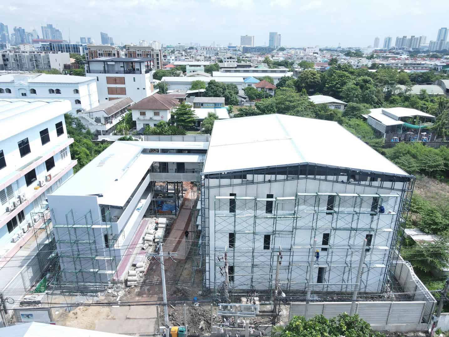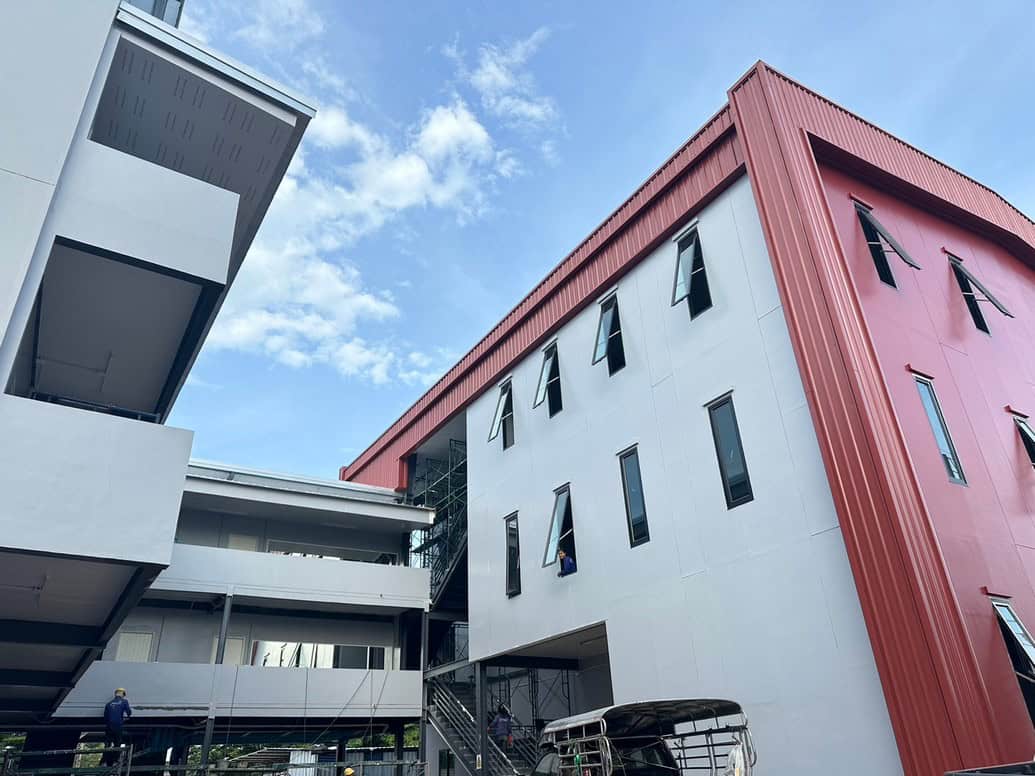 CDI New factory and office ก่อสร้างอาคารผลิต และหอพักพนักงาน โรงงานเย็บผ้าม่านคุณภาพสูง เนื่องจากข้อจำกัดของพื้นที่ก่อสร้างที่อยู่ในซอยแคบ การเลือกใช้วัสดุสำเร็จรูป ที่เตรียมผลิตจากหน้างานจึงเป็นทางเลือกที่เหมาะสม งานโครงสร้างเลือกใช้โครงสร้างเหล็กสำเร็จรูป พื้นผนังเลือกใช้แผ่นผนังสำเร็จ พรีคาสคอนกรีตจาก V-Con ทำให้ติดตั้งงานโครงสร้างได้อย่างรวดเร็ว และ ไม่รบกวนบริเวณข้างเคียง บริษัทฯ ให้บริการออกแบบและยื่นขออนุญาตก่อสร้าง พร้อมก่อสร้างแล้วเสร็จทุกระบบแบบ Turnkey ครบ จบ ที่เดียว Client: Charoen décor international Co.,Ltd. Date: 2023
