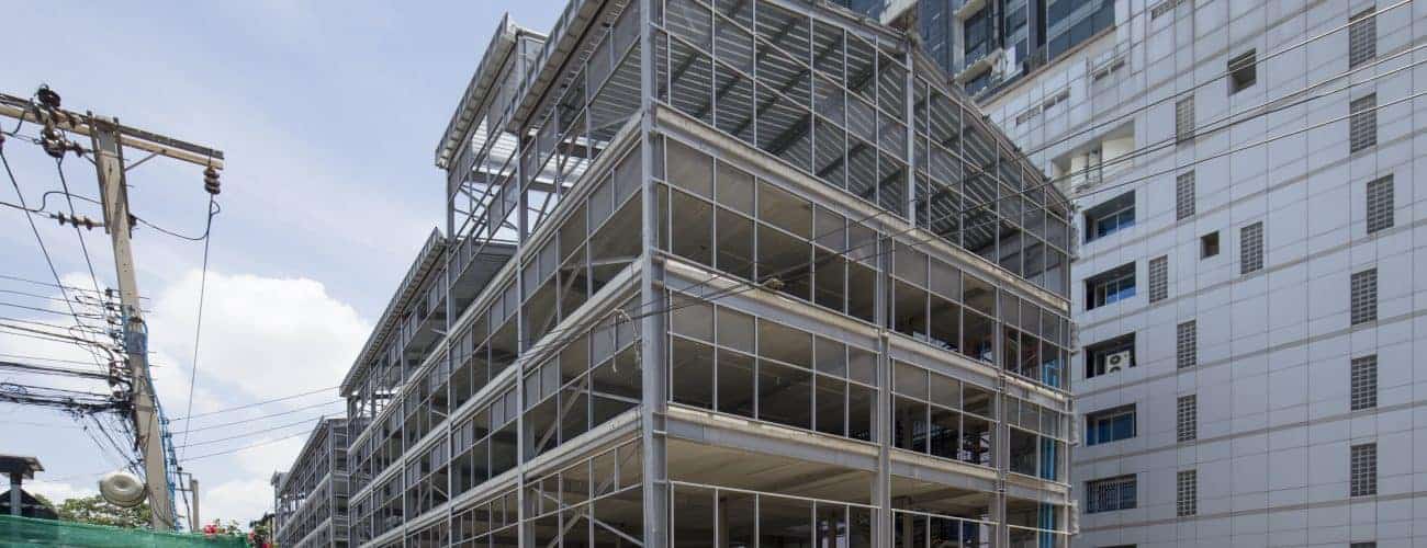 ลูกค้าต้องการสร้างสำนักงานพร้อมคลังสินค้า4ชั้น ด้วยอาคารเหล็กสำเร็จรูปพร้อมสาธารณูปโภครอบอาคาร