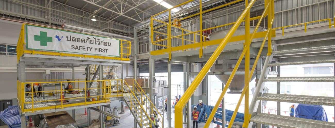 Platform สำหรับติดตั้งเครื่องจักรลูกค้าให้โจทย์มาคือต้องการโครงสร้างที่ชุบกัลวาไนซ์พร้อมติดตั้งที่หน้างาน การชุบกัลวาไนซ์จะทำให้โครงสร้างเหล็กเชื่อมประกอบที่หน้างานต้องไปเก็บสีกัลวาไนซ์ซึ่งไม่ตรงความต้องการใช้งานดังนั้น SFB จึงนำเสนอปรับเปลี่ยนโดยใช้ระบบ Bolt & Nutt ซึ่งโครงสร้างระบบ PEB สามารถตอบโจทย์สำหรับโครงการได้อย่างเหมาะสม