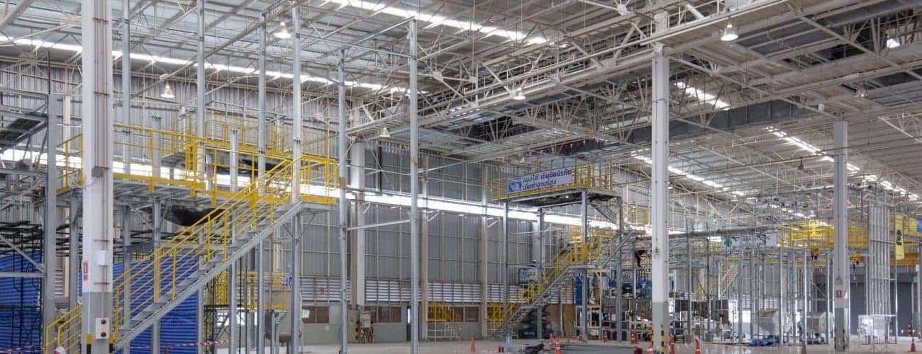 มีการเล่นระดับกับหลังคาเหล็กเป็นระยะเพิ่มลูกเล่นให้กับรูปด้านมีความสวยงาม โครงเหล็กผลิตที่โรงงาน นำไปประกอบหน้างานด้วยBolt&Nut ด้วยพื้นที่ทำงานจำกัด การเตรียมผลิตที่โรงงานควบคุมคุณภาพได้ดีกว่า ติดตั้งง่ายใช้เวลาน้อย Platform สำหรับติดตั้งเครื่องจักรลูกค้าให้โจทย์มาคือต้องการโครงสร้างที่ชุบกัลวาไนซ์พร้อมติดตั้งที่หน้างาน การชุบกัลวาไนซ์จะทำให้โครงสร้างเหล็กเชื่อมประกอบที่หน้างานต้องไปเก็บสีกัลวาไนซ์ซึ่งไม่ตรงความต้องการใช้งานดังนั้น SFB จึงนำเสนอปรับเปลี่ยนโดยใช้ระบบ Bolt & Nutt ซึ่งโครงสร้างระบบ PEB สามารถตอบโจทย์สำหรับโครงการได้อย่างเหมาะสม Client: Taikisha (Thailand) Co.,Ltd. Date: 2018